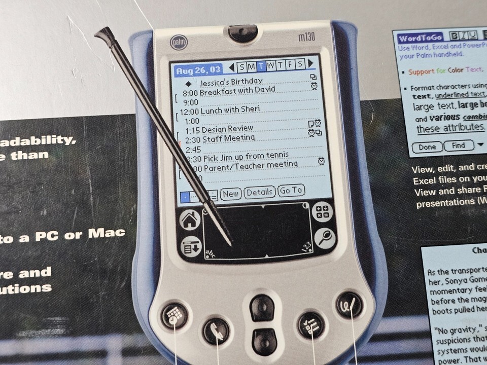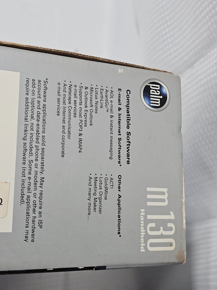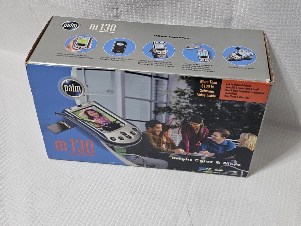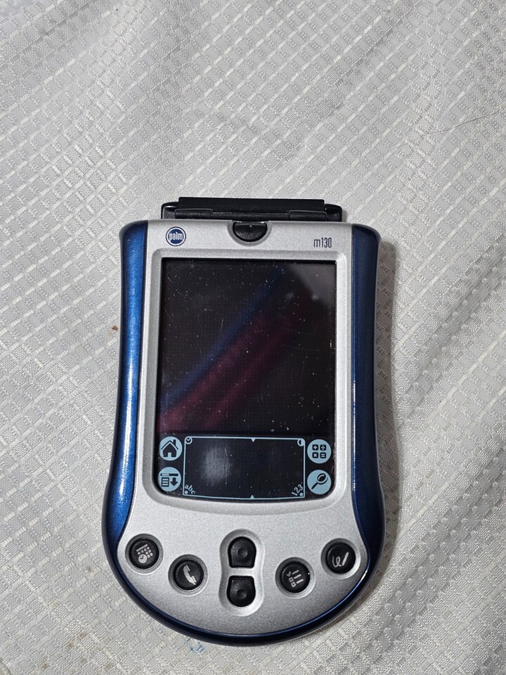 Description of item: This Palm m130 handheld PDA features a bright color display, Palm OS 4.1, and a compact lightweight design perfect for organizing contacts, calendars, notes, and tasks on the go. The unit includes a rechargeable battery and offers classic Palm functionality with an easy-to-use interface ideal for collectors, retro tech users, or anyone wanting a reliable digital organizer.