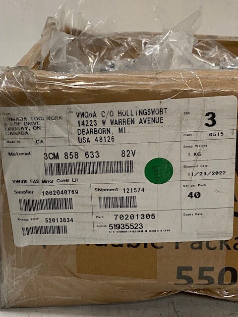 40 Quantity of Volkswagen VW416 FAS Mirror Covers LH 3CM-858-633 (40 Quantity)