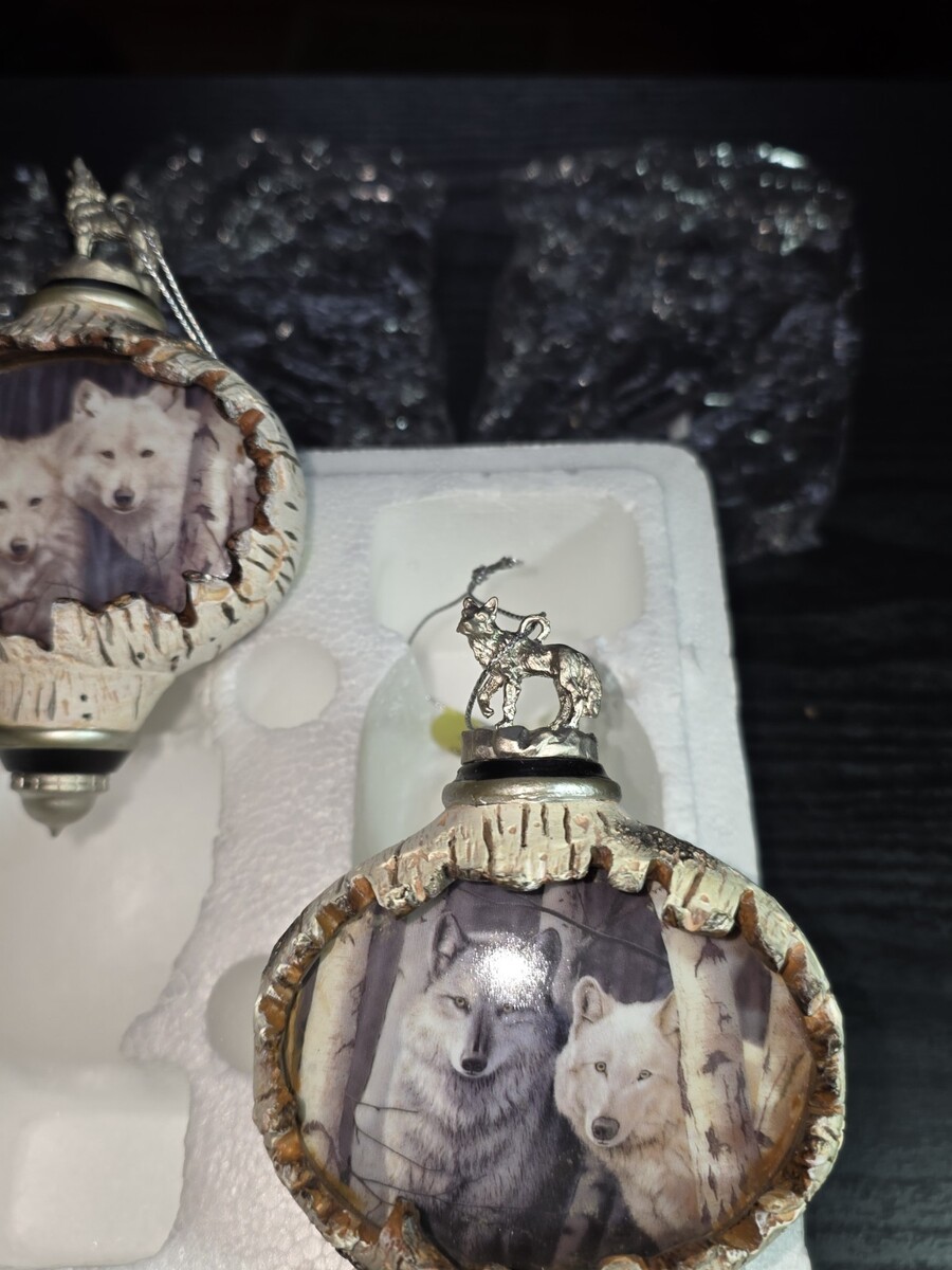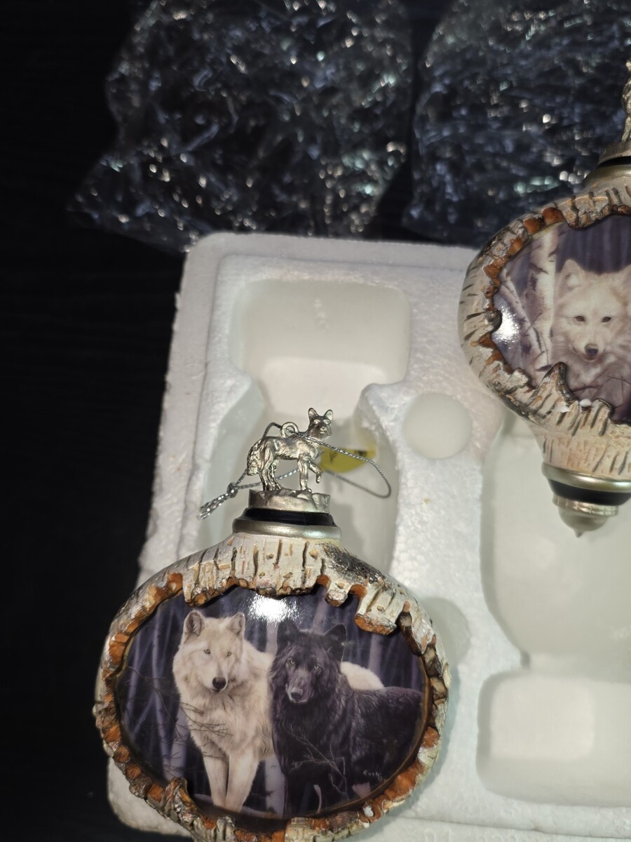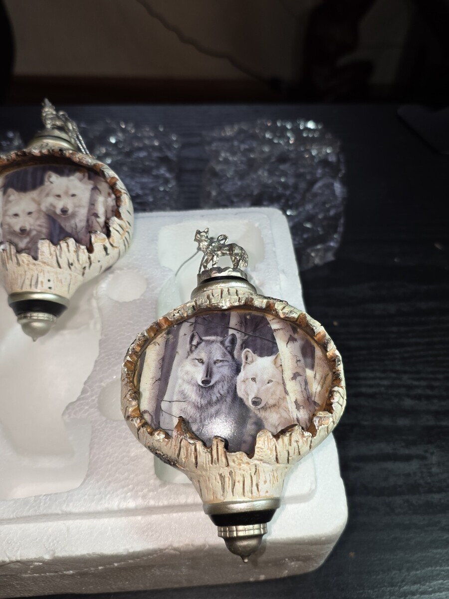 Bradford Editions Spirits of the Forest Heirloom Wolves White Birch Ornaments