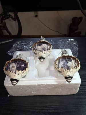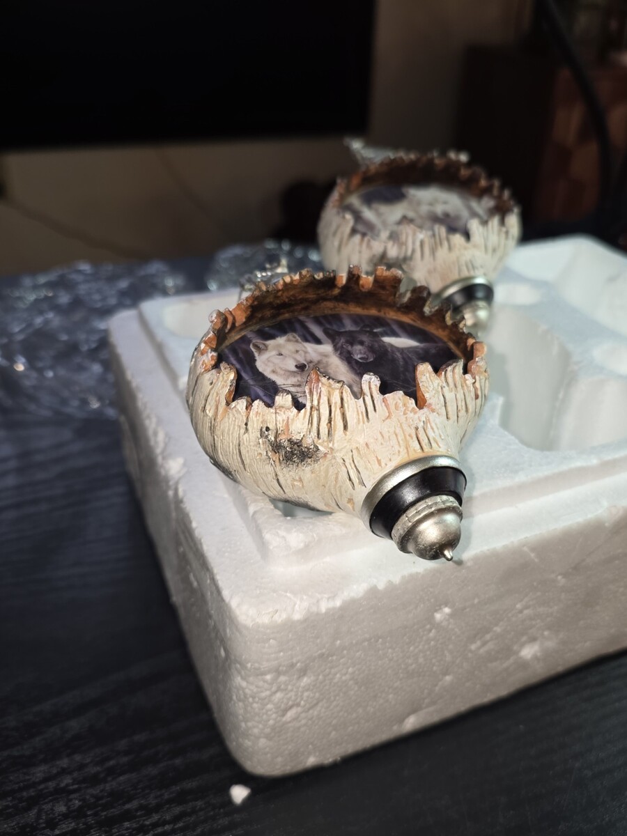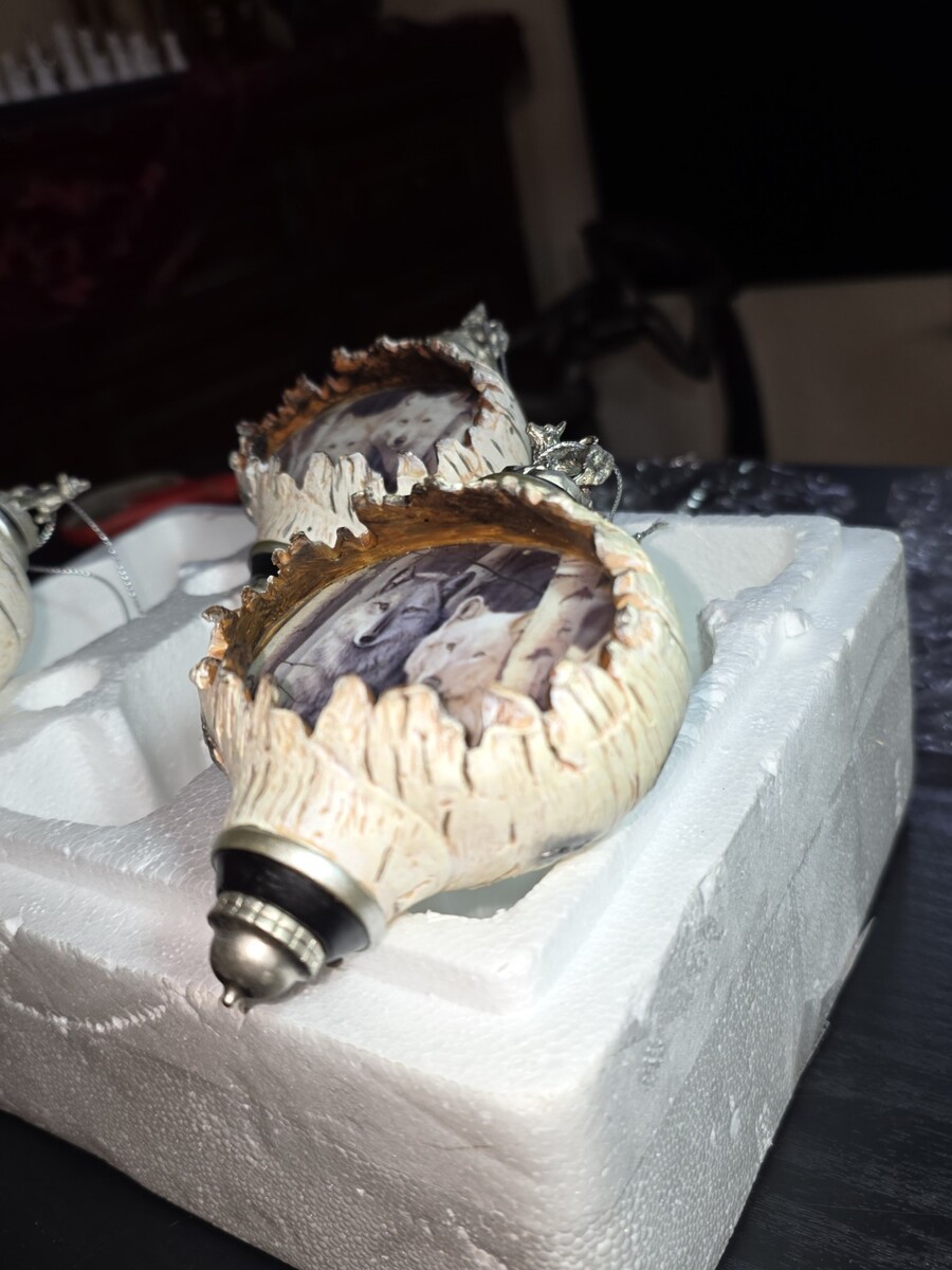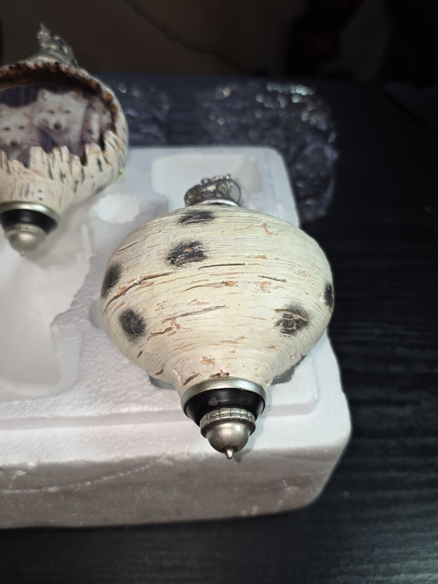 Bradford Editions Spirits of the Forest Heirloom Wolves White Birch Ornaments