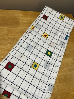 This vintage Thomaston Queen sheet set features a geometric pattern of squares in primary colors, perfect for adding a retro touch to your bedroom decor. Made from a comfortable cotton blend material, this set includes a pillowcase, fitted sheet, and flat sheet, offering both style and practicality. Ideal for collectors or those looking to add a unique piece to their bed and bath linens collection, this set is a charming and nostalgic addition to any home.