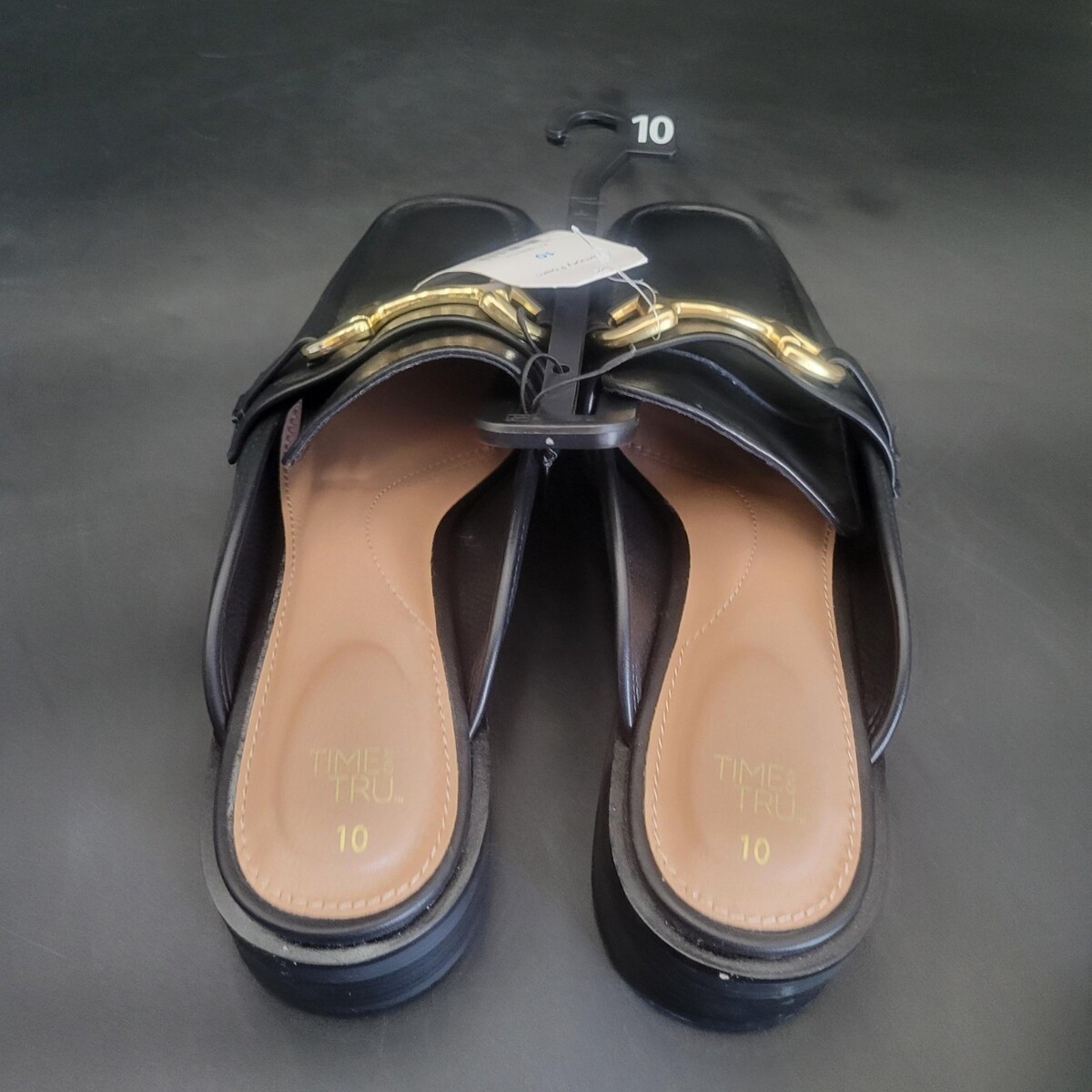 Time and Tru Women's Backless Loafer Mules 10 M Black NWT Memory Foam Comfort