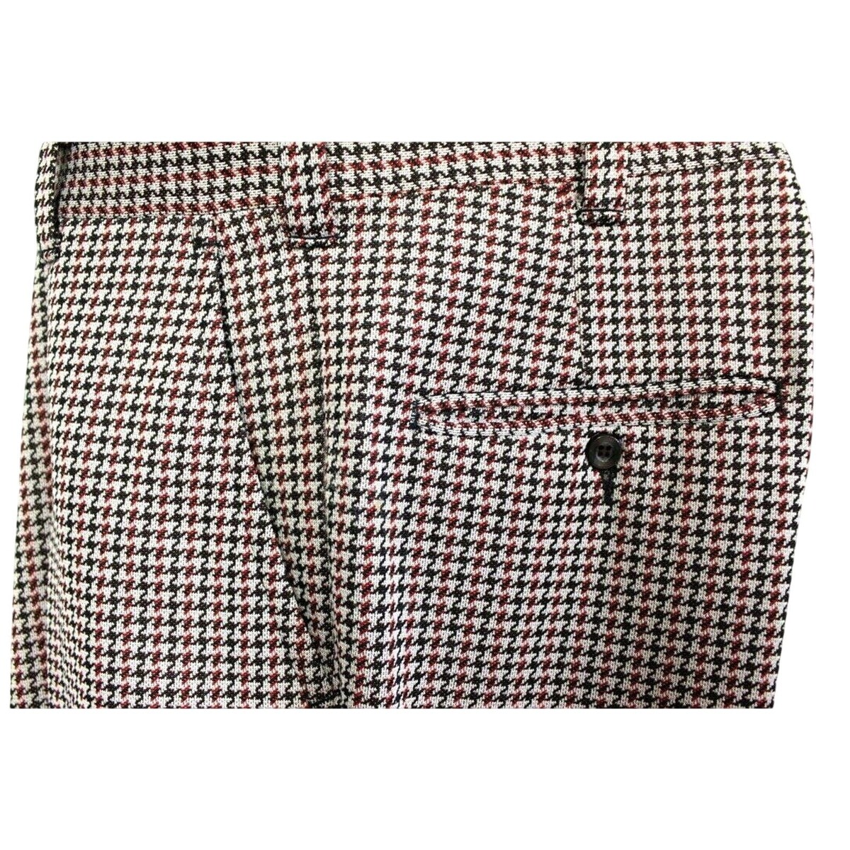Provenance Note: Polyester-blend leisure pants with bold patterns became a staple of men?s wardrobes in the 1970s. Designed for comfort and style, they often featured vibrant houndstooth, checks, and plaids. These pants exemplify the disco-era obsession with bold prints and flared silhouettes, making them both collectible and wearable today.