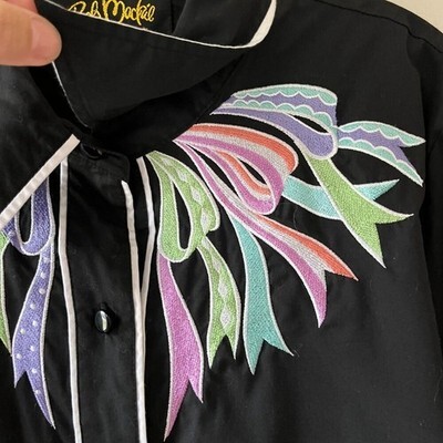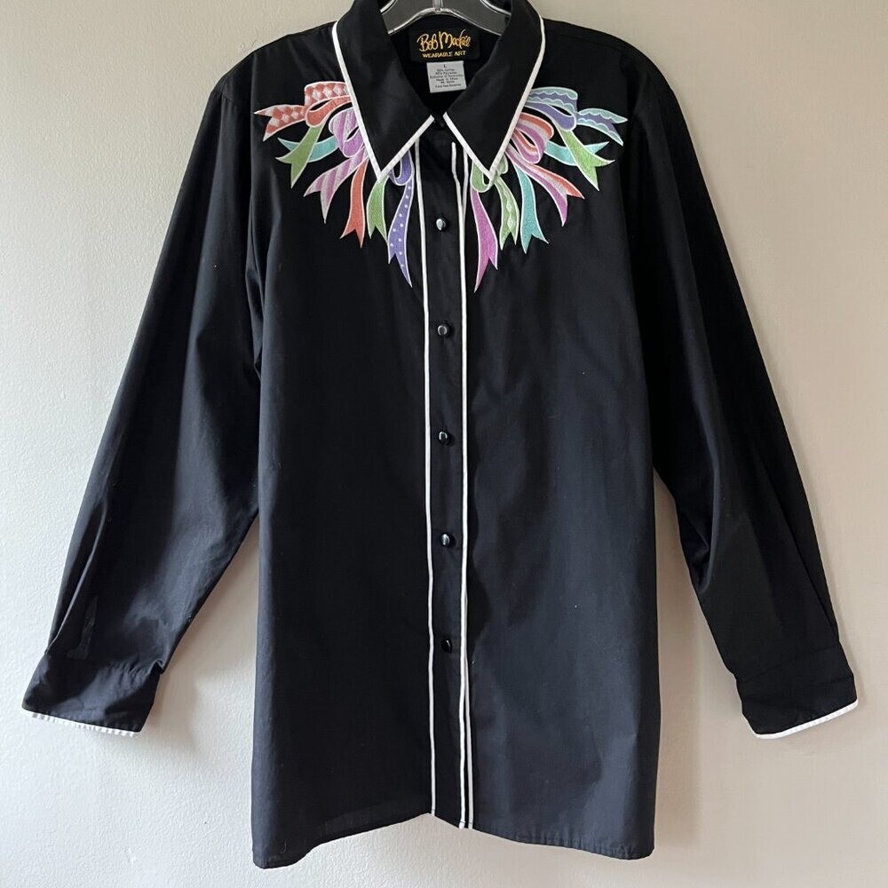 Bob Mackie Sz L Wearable Art Shirt Womens Black Embroidered Western Button Up