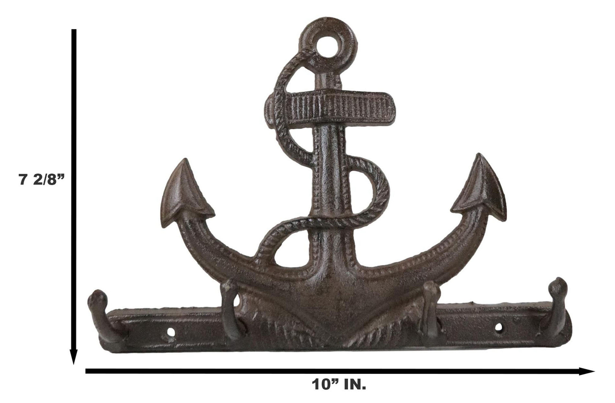 ? This Nautical Ship Anchor 4 Pegs Wall Hook measures 7.25" tall, 10" wide and 1.75" deep approximately. Each anchor wall hook weighs about 1.75 pounds.