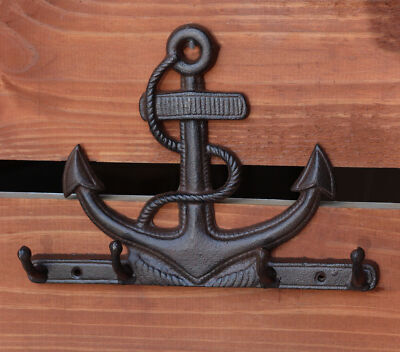 Cast Iron Rustic Sailor Nautical Sea Ship Anchor 4 Pegs Quadruple Wall Hook