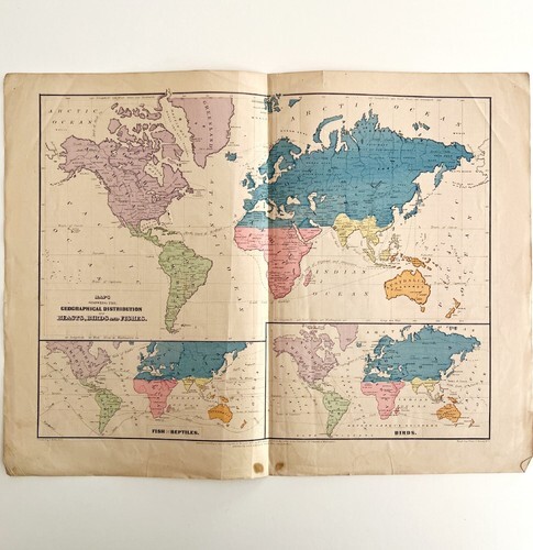 Map Of The World 1884 Beast Birds Fish Distribution Victorian Lithograph DWP3D