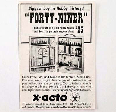 1949 X-acto Knives Forty Niner Set Advertisement Craft Hobby Supplies E8Q