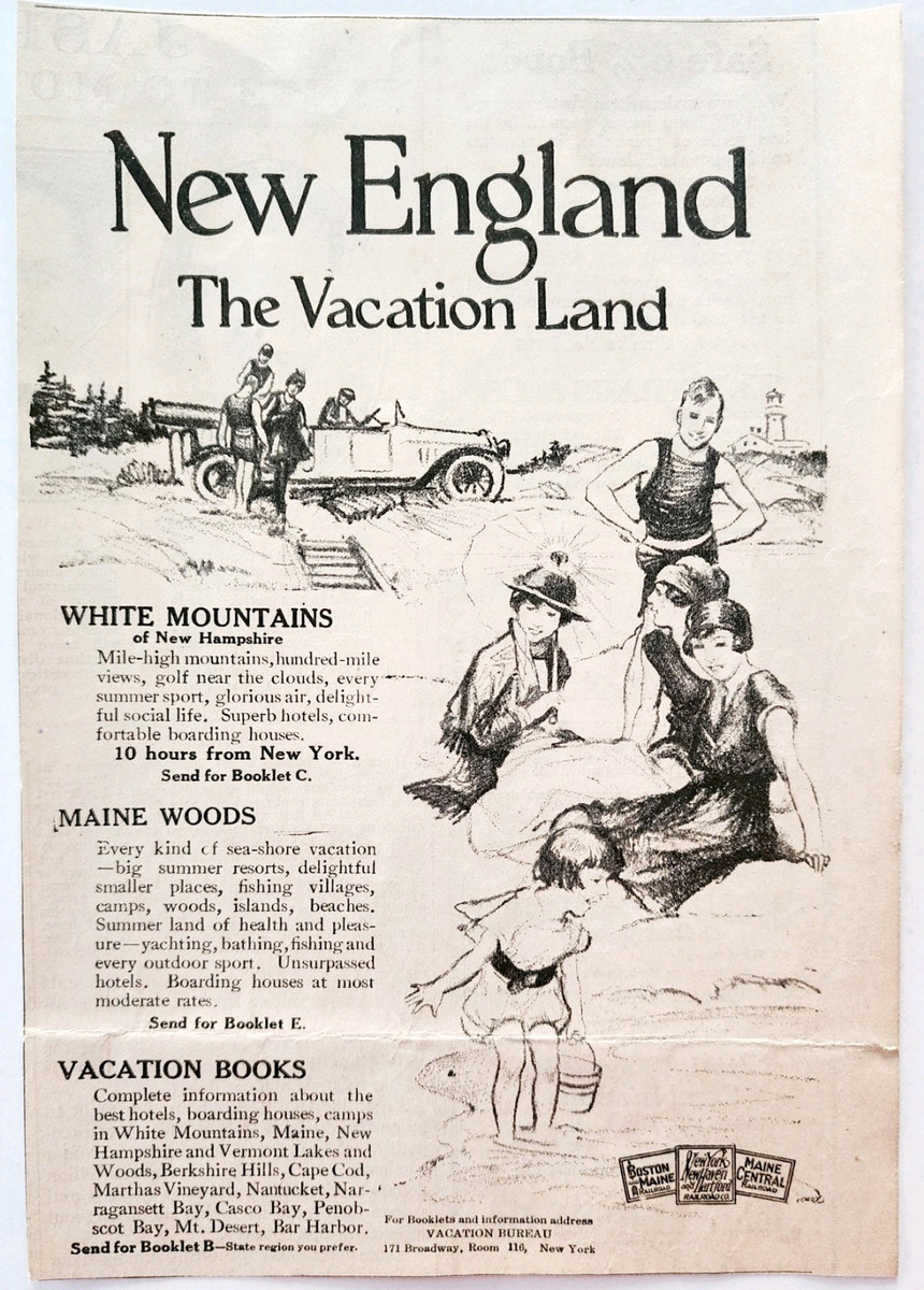 1917 New England Vacation Land Travel Advertisement WW1 World War Era DWQQ3