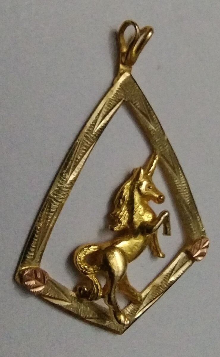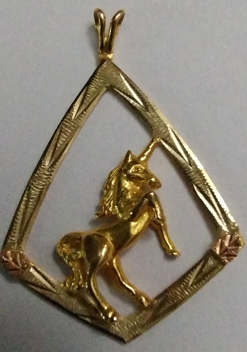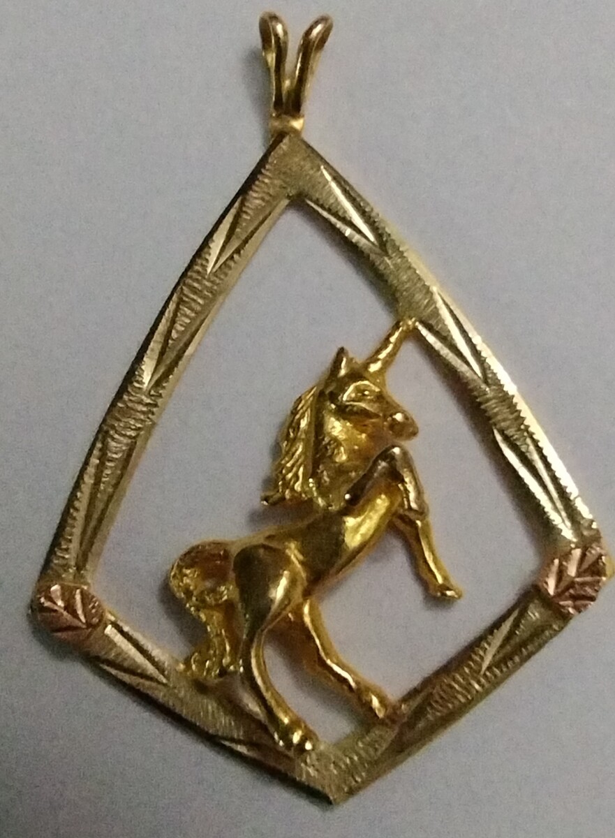 Beautiful 10K Black Hills Gold diamond cut Unicorn pendant by Landstrom's.