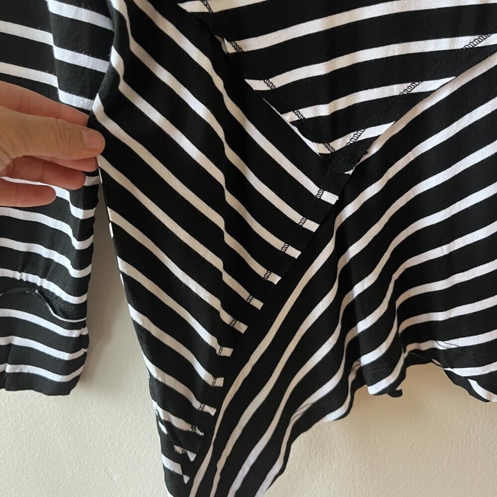 Dressbarn Sz S White Black Striped Stretch Pullover Blouse Asymmetrical Hem