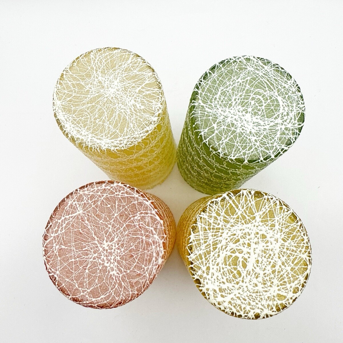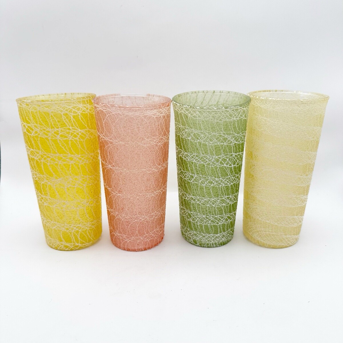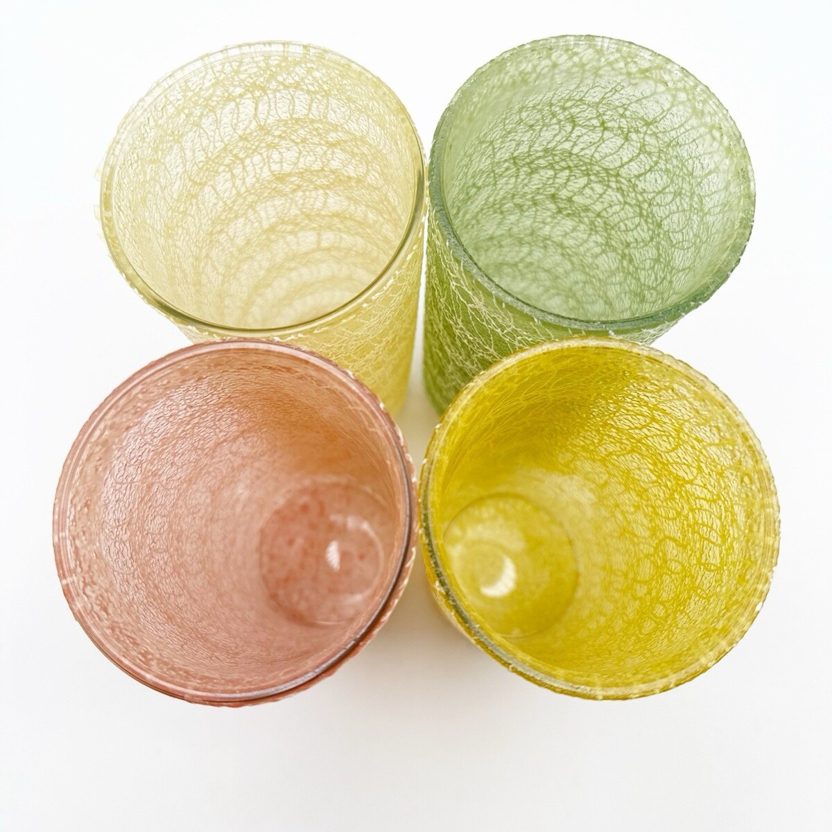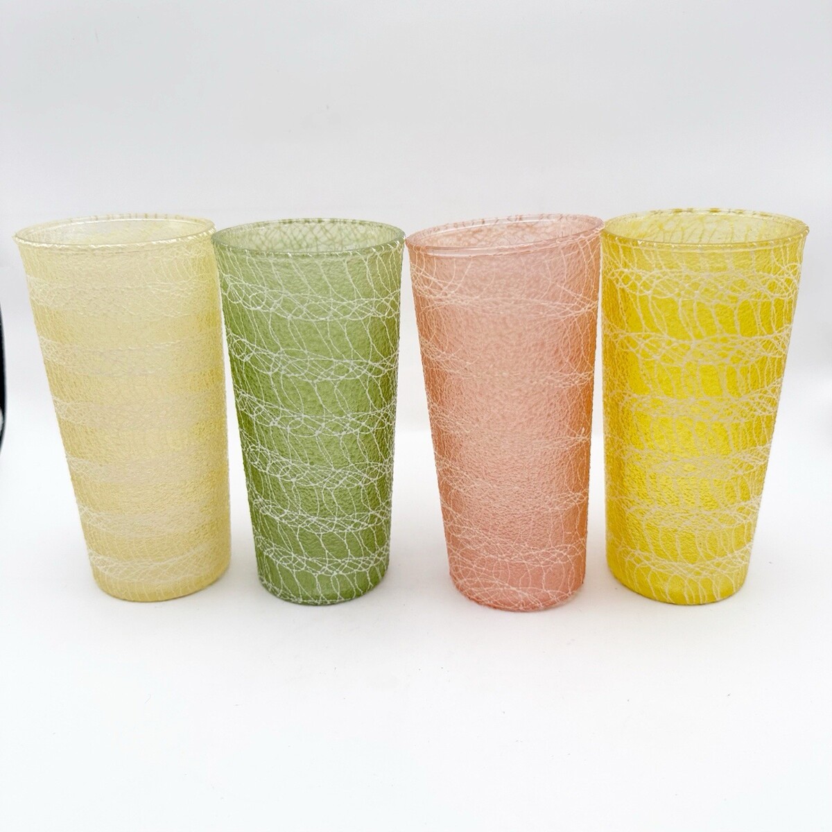 In good vintage condition. 4 tumblers in multi colors yellow, green, pink and ivory.