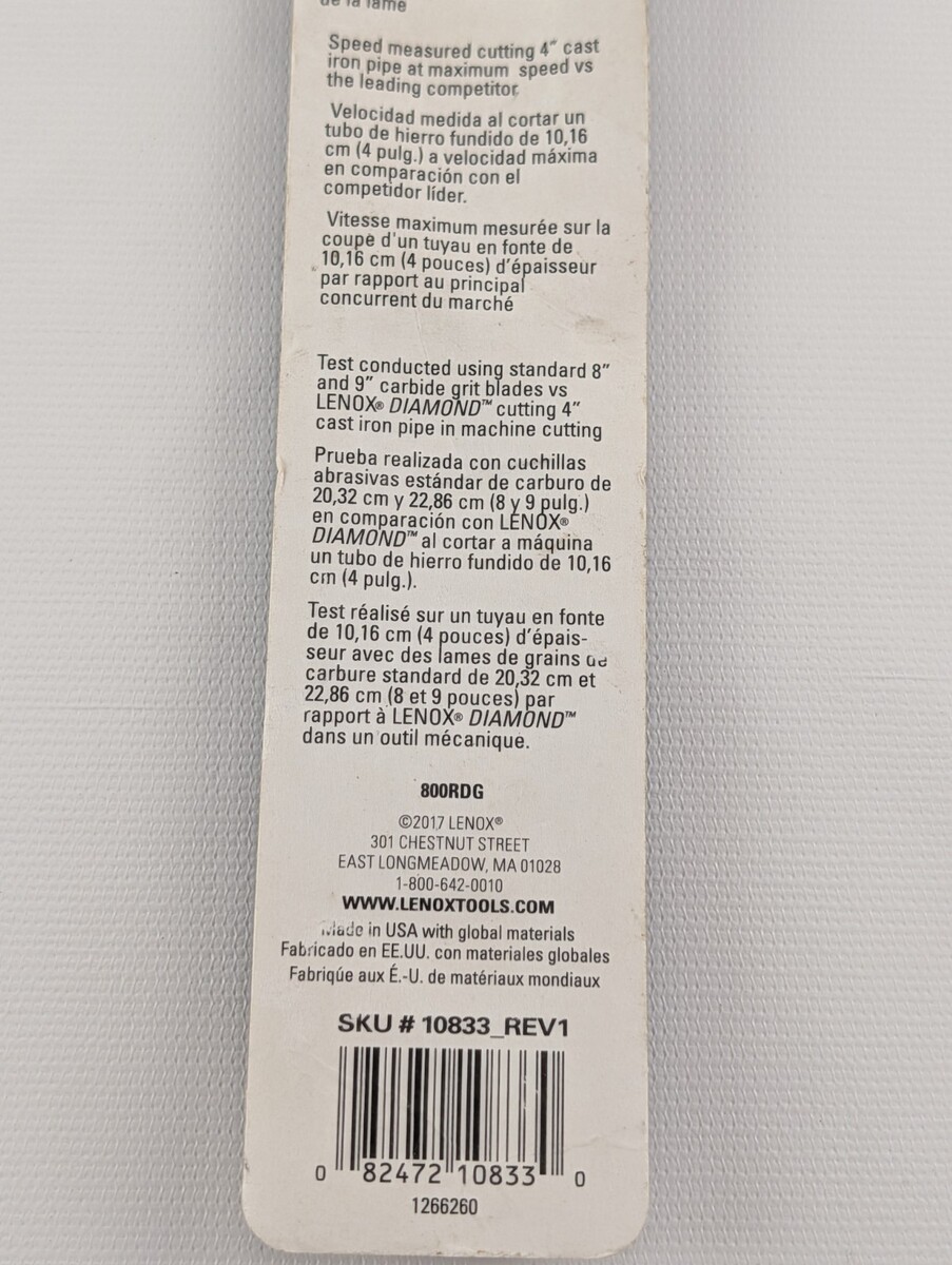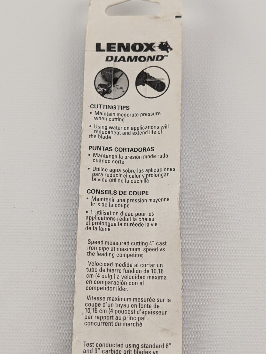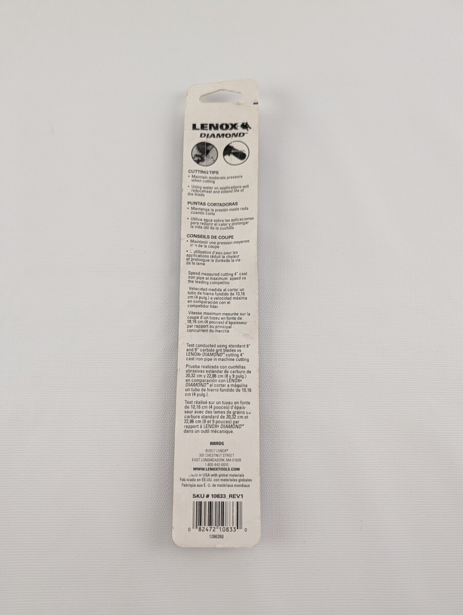Lenox 8-In Diamond Grit Reciprocating Saw Blade 10833 New. Condition is New. Shipped with USPS Ground Advantage.