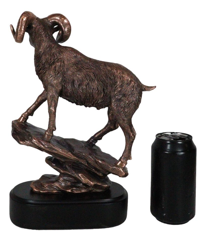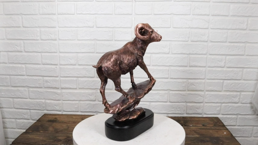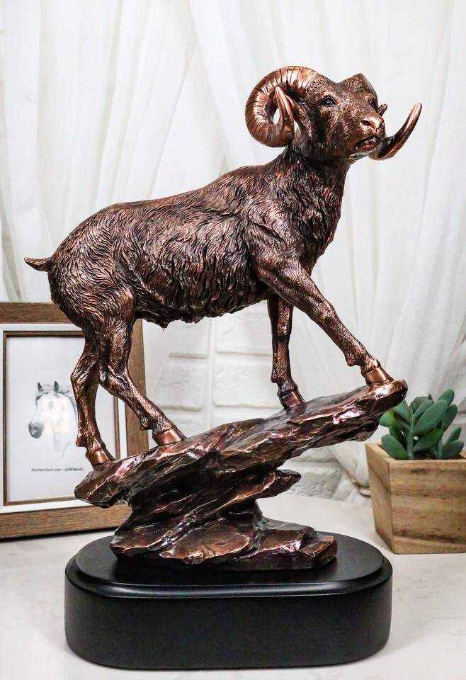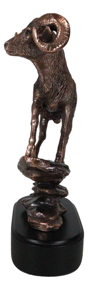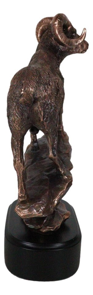 ? This Beautiful Wildlife Bighorn Ram Standing On A Steep Rock figurine is made of the highest quality resin, undergoing the process of bronze electroplating giving it a uniform shine on the inside as well as the surface of the figurine. This process makes the figurine resemble the look of actual bronze but with much lesser weight.