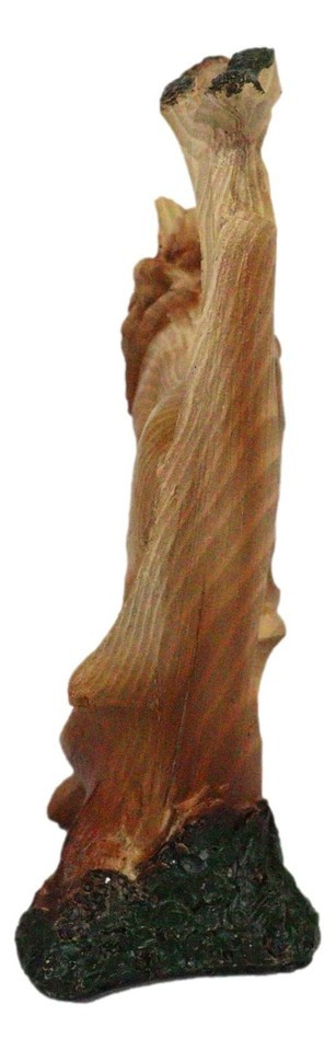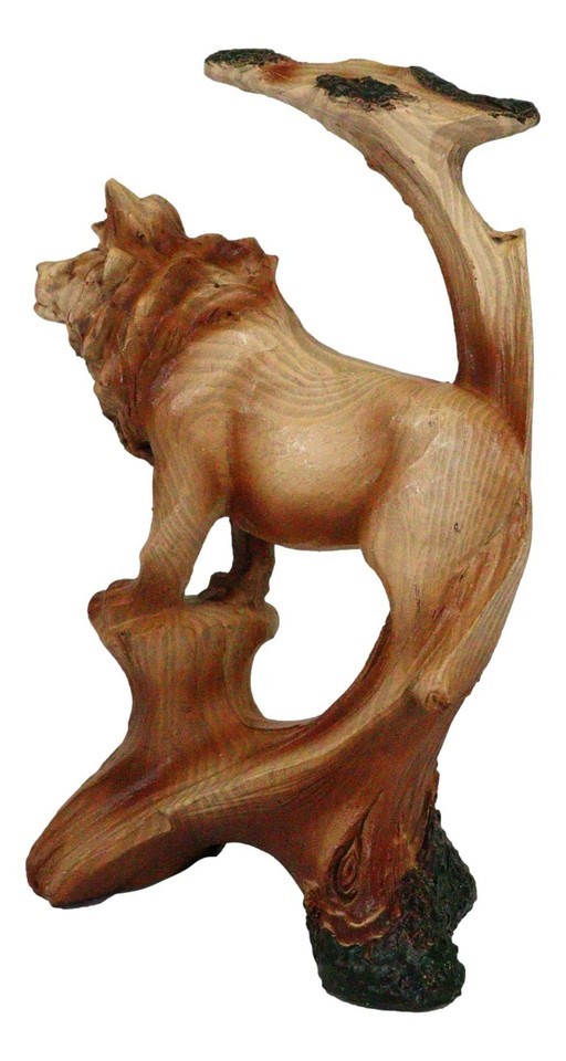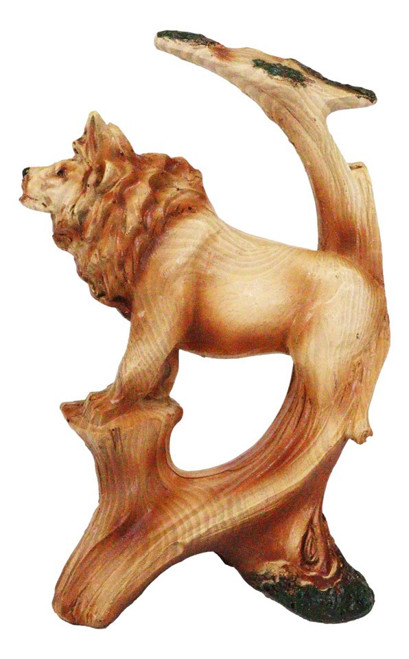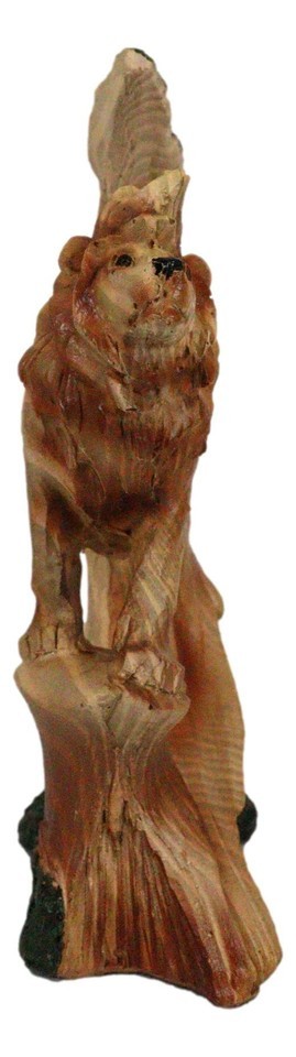 ? In this artistic sculpture we feature the Lion King surveying his land in a wildlife scene finished to look like a wooden handicraft. The faux wood finish adds scenic value of nature and wildlife to the sculpture. This beautiful masterpiece will make a wonderful decor for your desks, shelves or what have you!