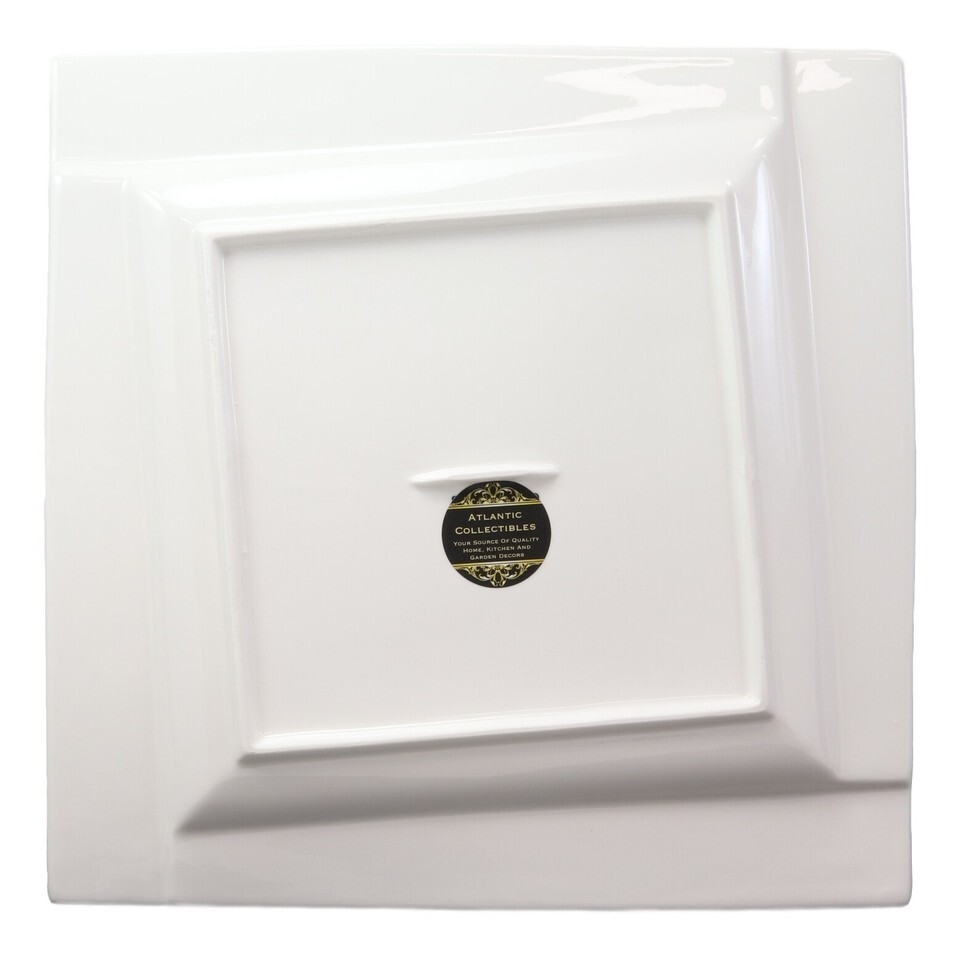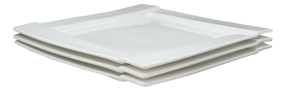 Set Of 3 Contemporary White Porcelain Square Large Dinner Serveware Plates 12"