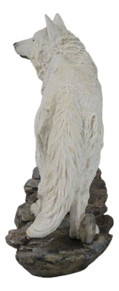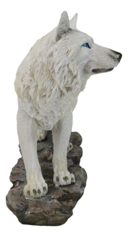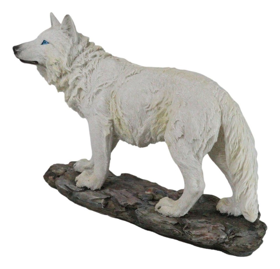 Winter Forest Hunter Tundra Snow White Albino Wolf On The Prowl Figurine 11.5"L