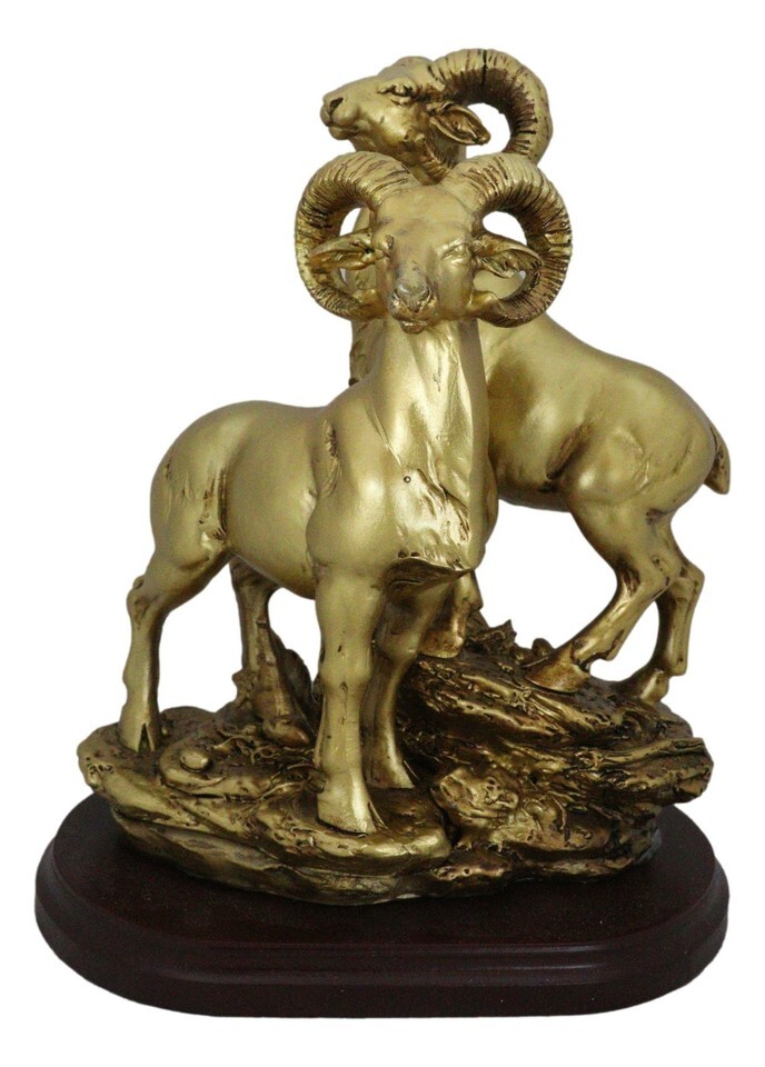 Rustic Country Bighorn Sheep Ram Family Climbing Rock Faux Gold Patina Figurine