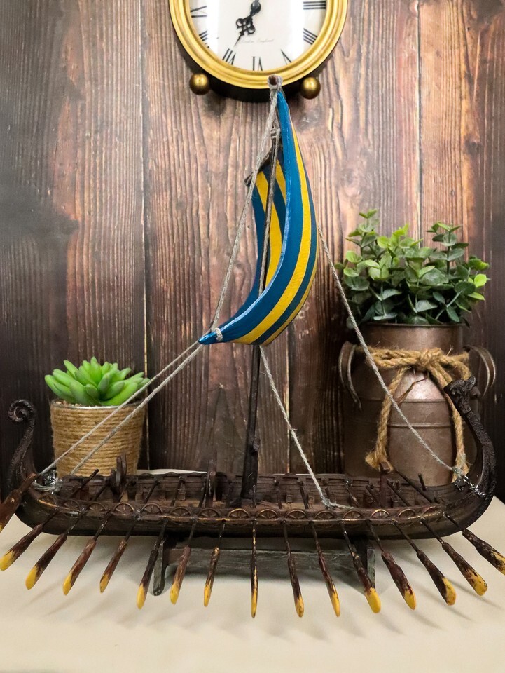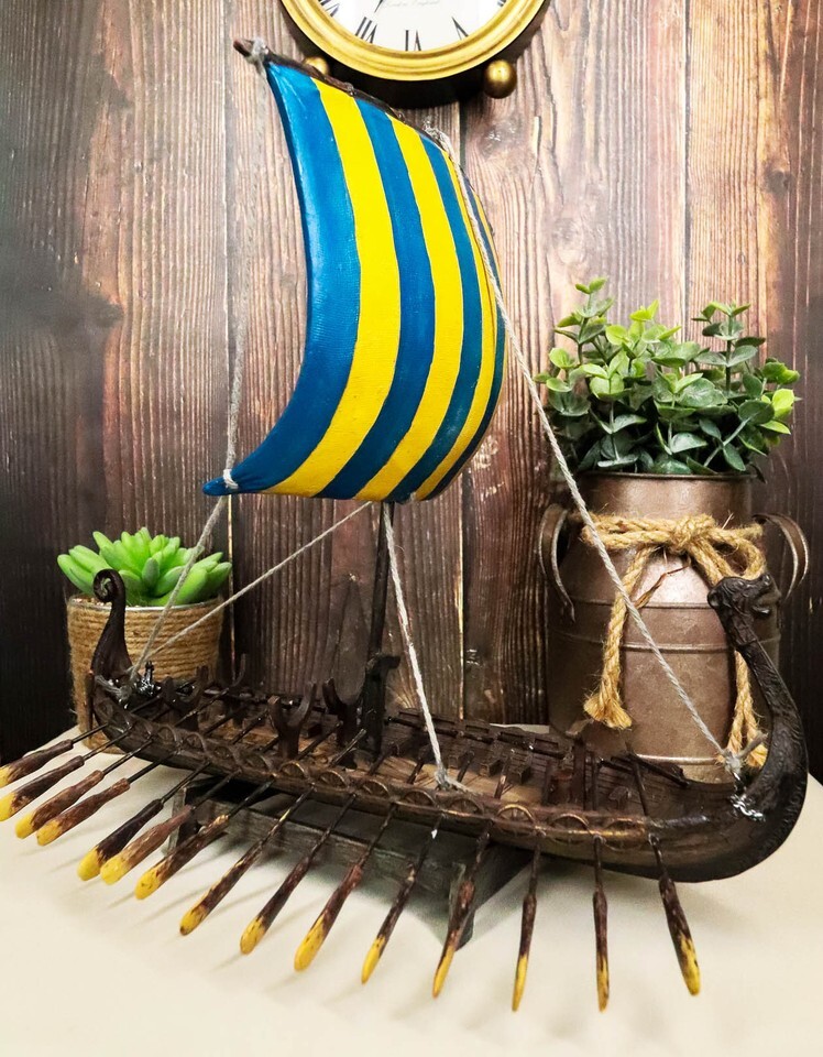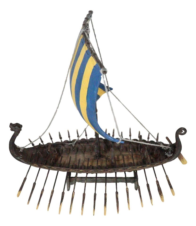 ? This Viking Dragon Longship Model is made of designer composite resin, hand painted and polished