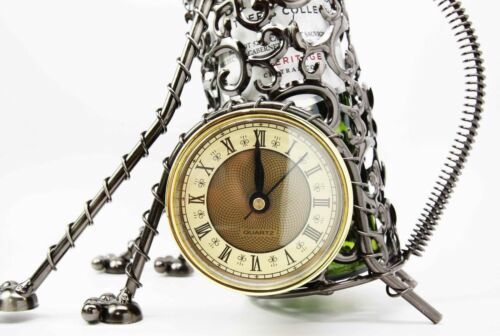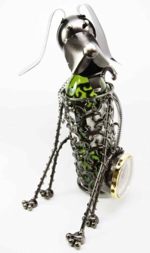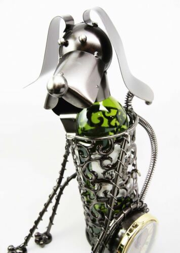 Sitting Beagle Dog Hand Made Metal Wine Bottle Holder Caddy With Analog Clock