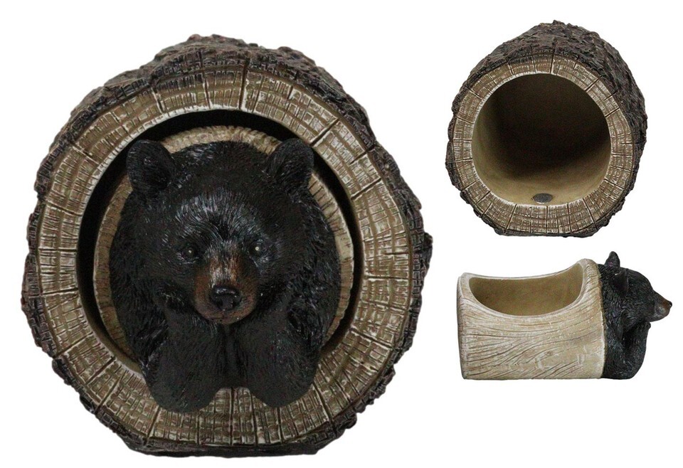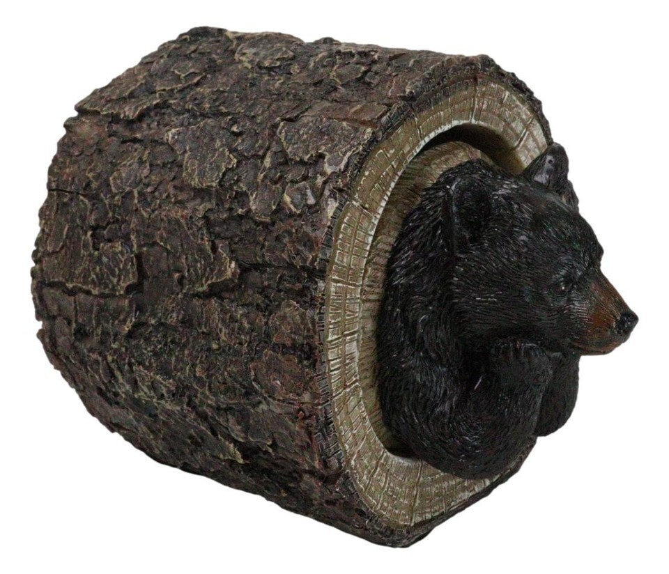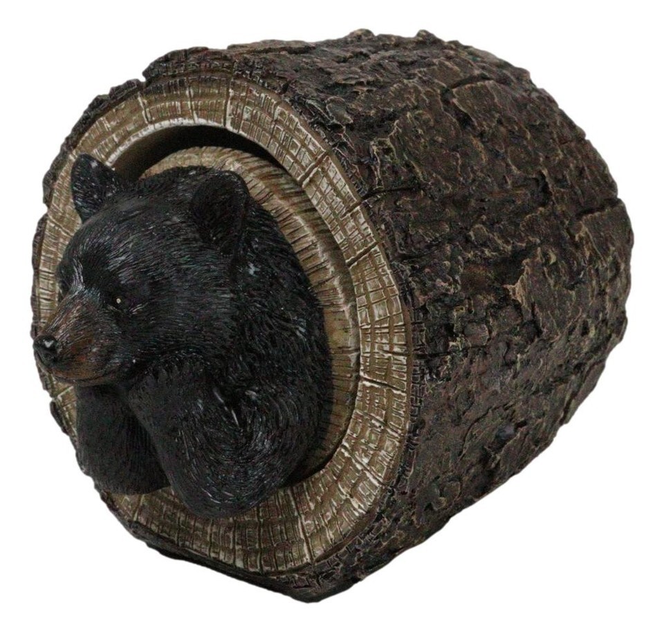 ? Capture the peaceful beauty of nature with the Daydreaming Black Bear in Tree Log Trinket Box. This delightful trinket box features an adorable black bear lounging contentedly inside a tree log, lost in a daydream. With intricate details and lifelike craftsmanship, this whimsical piece serves as both a charming decor item and a functional storage solution for small treasures. Ideal for animal lovers or those who appreciate rustic, woodland-inspired decor.
