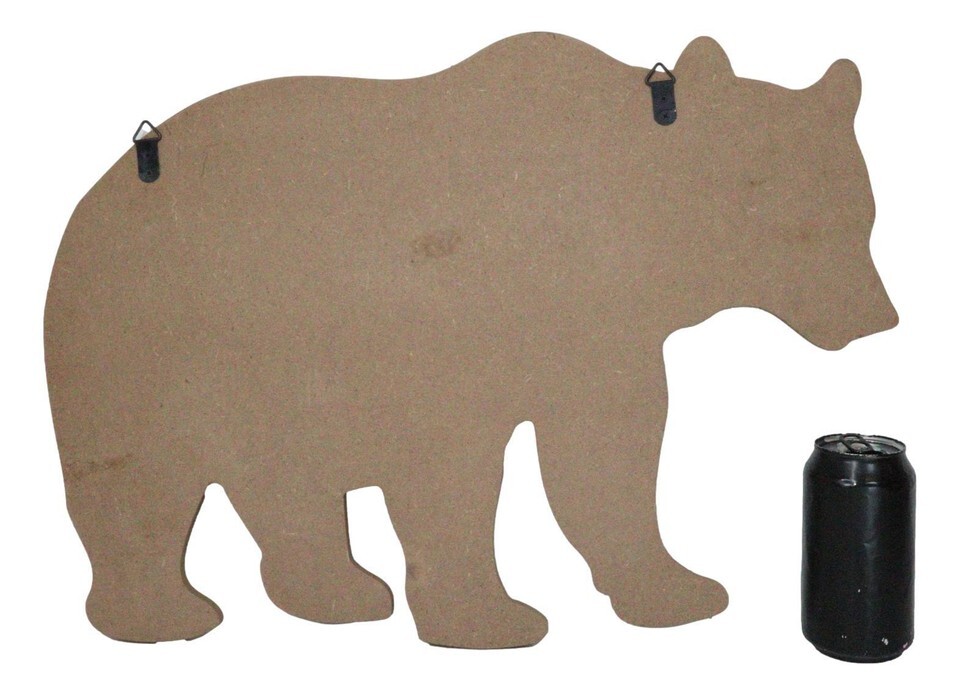 ? This Black Bear Cutout Wall Decor measures 14.75" High, 21" Wide and 0.5" Thick approximately. It weighs about 2 pounds.