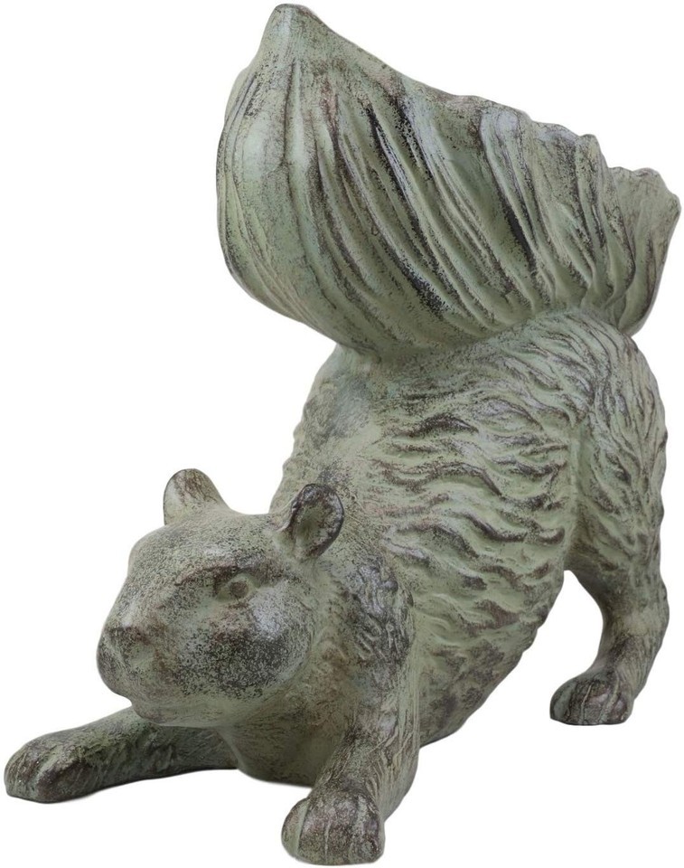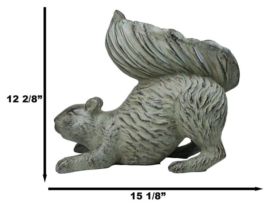 Aluminum Whimsical Crouching Bushy Tailed Squirrel Bird Feeder Garden Statue
