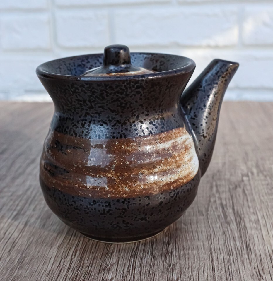 ? This Traditional Japanese Made Soy Sauce dispenser is made of porcelain in tenmoku (reduction firing) style. Made in Japan Mino Ware Earthenware Plant. Microwave and Dishwasher safe.