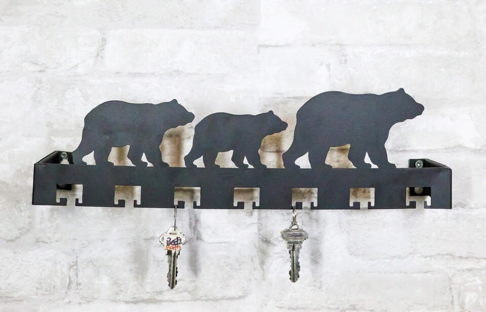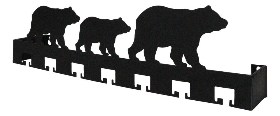 ? Enhance your home with our Rustic Western Black Bear Family Silhouette Metal Wall Key Hooks. This unique abstract art piece showcases a charming bear family, beautifully crafted to bring a touch of nature and wilderness into your space. Perfect for entryways or mudrooms, the multi pegs offer both functionality and style, keeping your keys organized while making a stunning statement. Embrace the spirit of the outdoors and add a warm, rustic charm to your decor!
