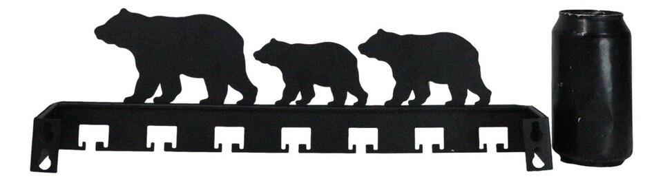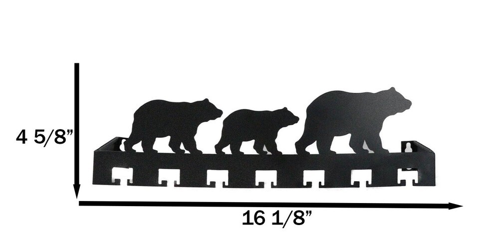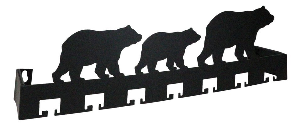 Rustic Western Black Bear Family Multi Pegs Metal Wall Key Hooks Decor Plaque