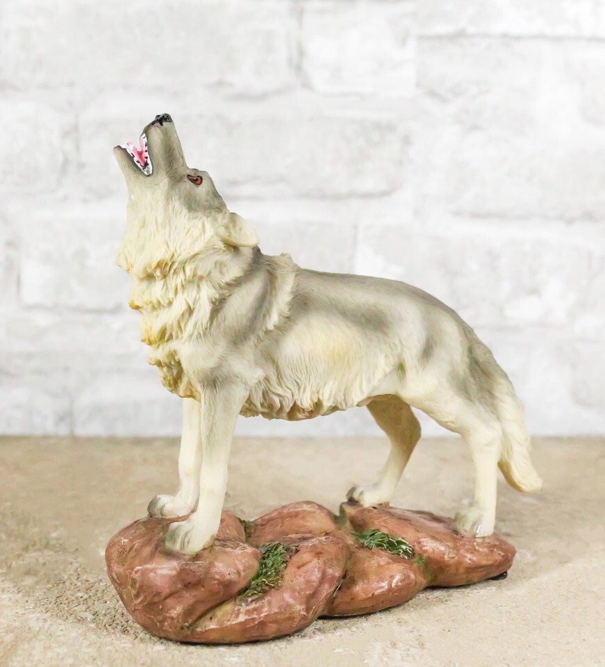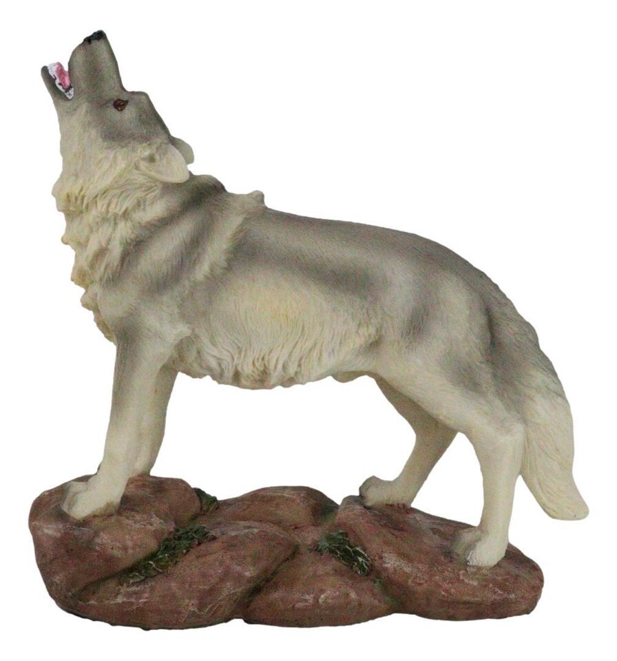 ? This Howling Gray Wolf Figurine is made of designer resin that is intricately sculpted with attention to detail. It is then hand painted and polished individually.