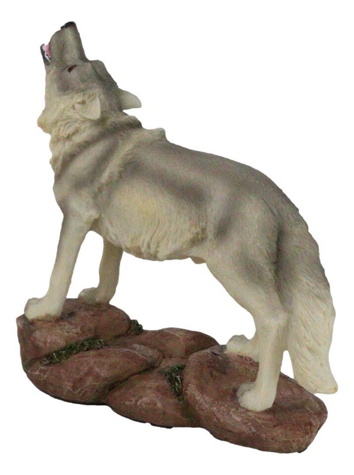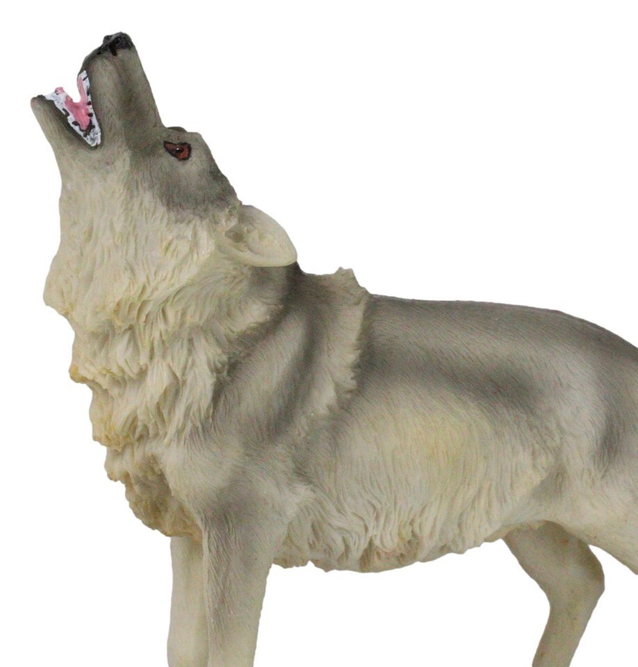 Forest Woodlands Mystical Alpha Gray Wolf Howling to The Moon Figurine 6" L