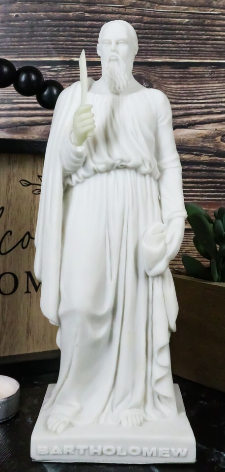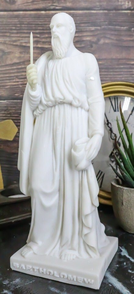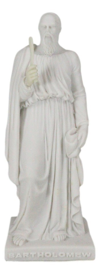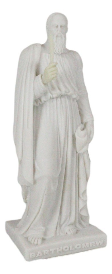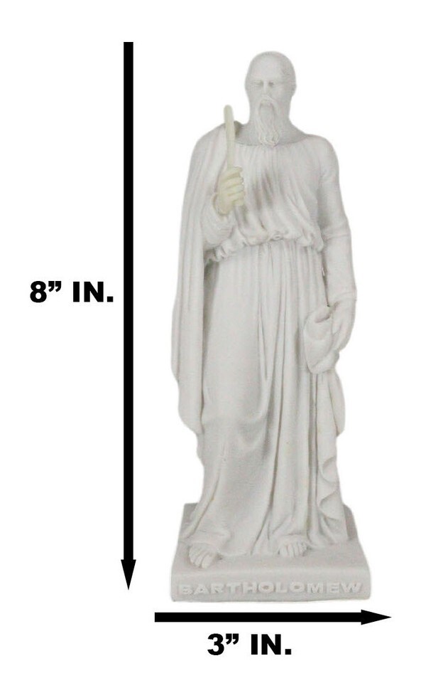 ? This Copenhagen Museum Reproduction Of Apostle Bartholomew Statue measures approximately 8"Tall, 3"Wide and 2.5"Deep.