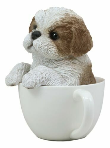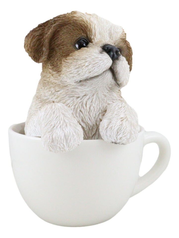 Realistic Adorable Shih Tzu Dog in Teacup Statue 5.75" Tall Pet Pal Decor Dogs