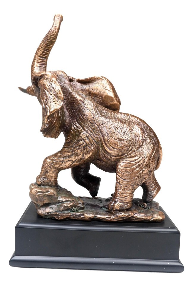 Ebros Safari Elephant Trumpeting Bronze Electroplated Figurine With Base 10.75"H