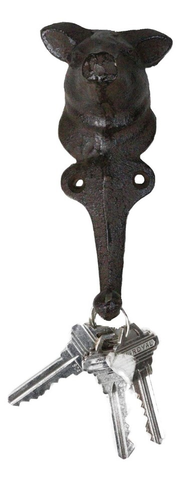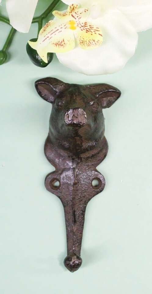 ? Bring farmhouse charm and rustic character to your space with the Pig Head Wall Hook! Crafted with sturdy cast iron and a distressed finish, this whimsical hook features a detailed pig head design that's both functional and decorative. Perfect for hanging keys, aprons, towels, hats, or light accessories, it adds a playful yet practical touch to kitchens, entryways, mudrooms, or garden sheds.