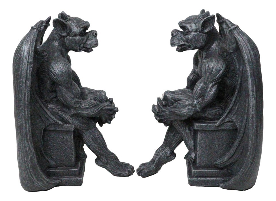 ? This Gargoyle Bookends Set is made of high quality polyresin. They are meticulously hand painted and polished. Color tone may vary from pictures.