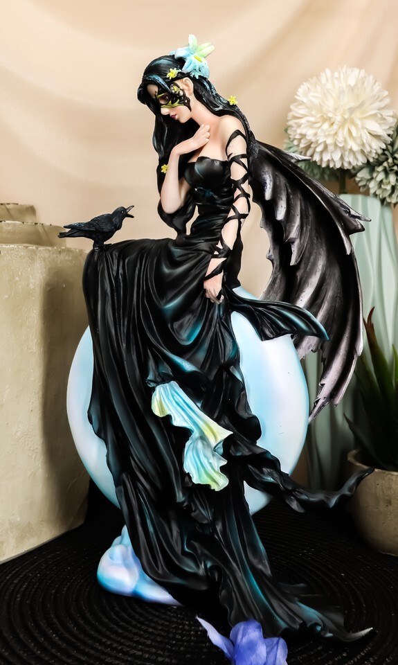 Ebros Large Gothic Lunar Eclipse Raven Fairy Statue 11"H Nene Thomas Dark Skies
