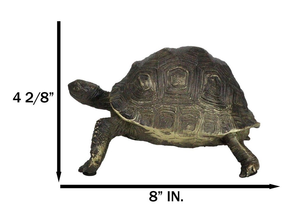 ? This Realistic Tortoise figurine stands at 4.25" tall, 8" Wide and 5.25" deep approximately. The sculpture weighs about 1.25 pounds.