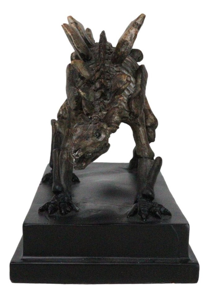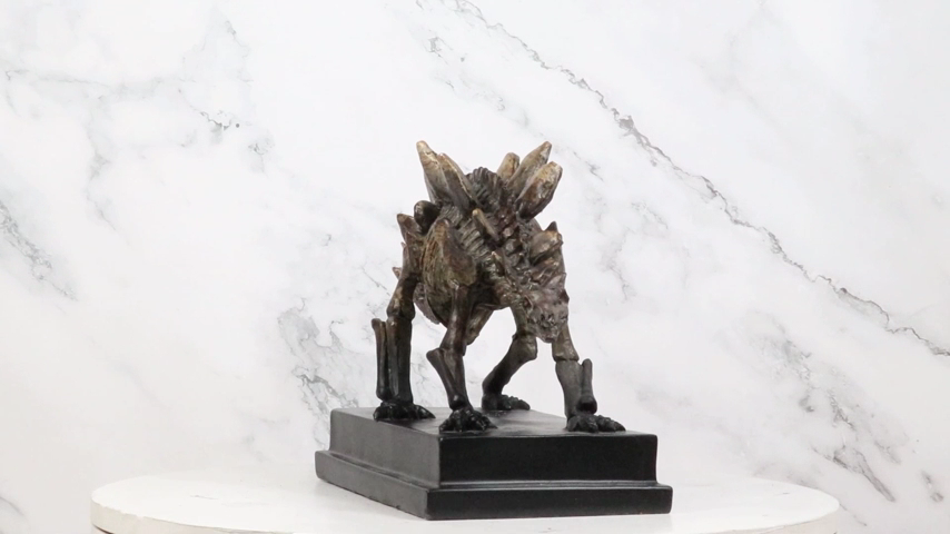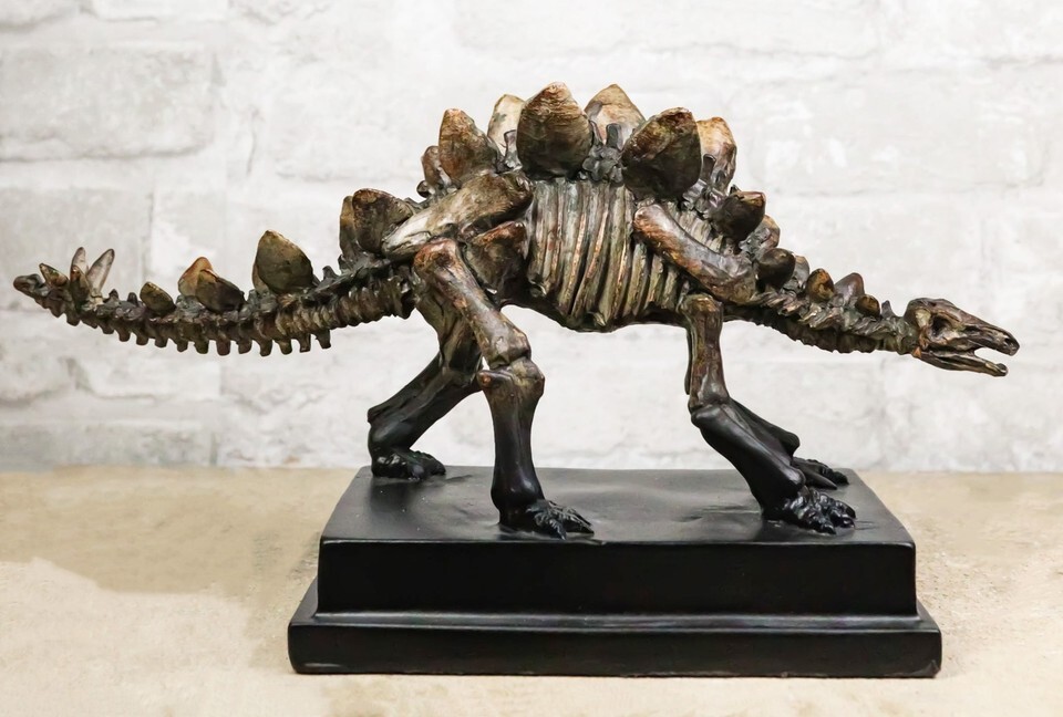 ? This Stegosaurus Dinosaur Fossil Skeleton Sculpture is made of high quality polystone, individually handpainted and polished. Because each piece is partially hand crafted, color tone may vary from pictures.
