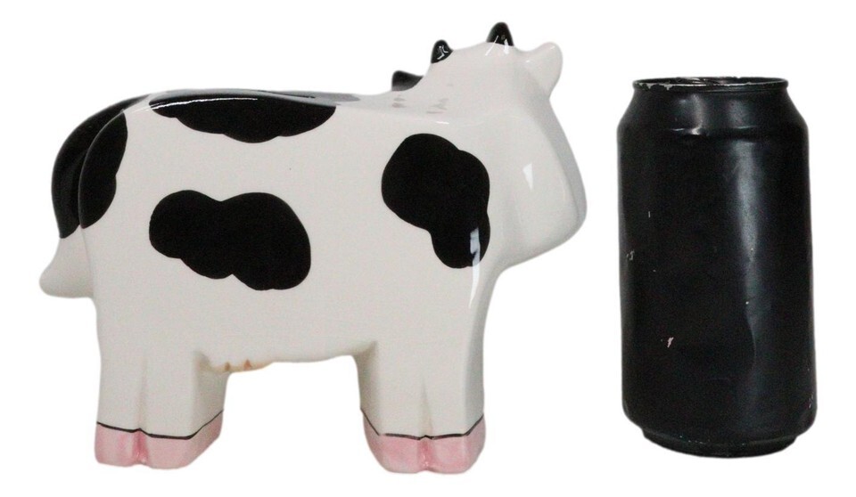 Whimsical Boxy Holstein Bovine Milk Cow Money Coin Savings Piggy Bank Figurine