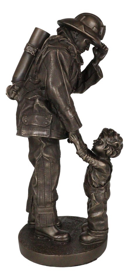 Civil Servant Fire Fighter Large Child Shaking Hands and Thanking Fireman Statue