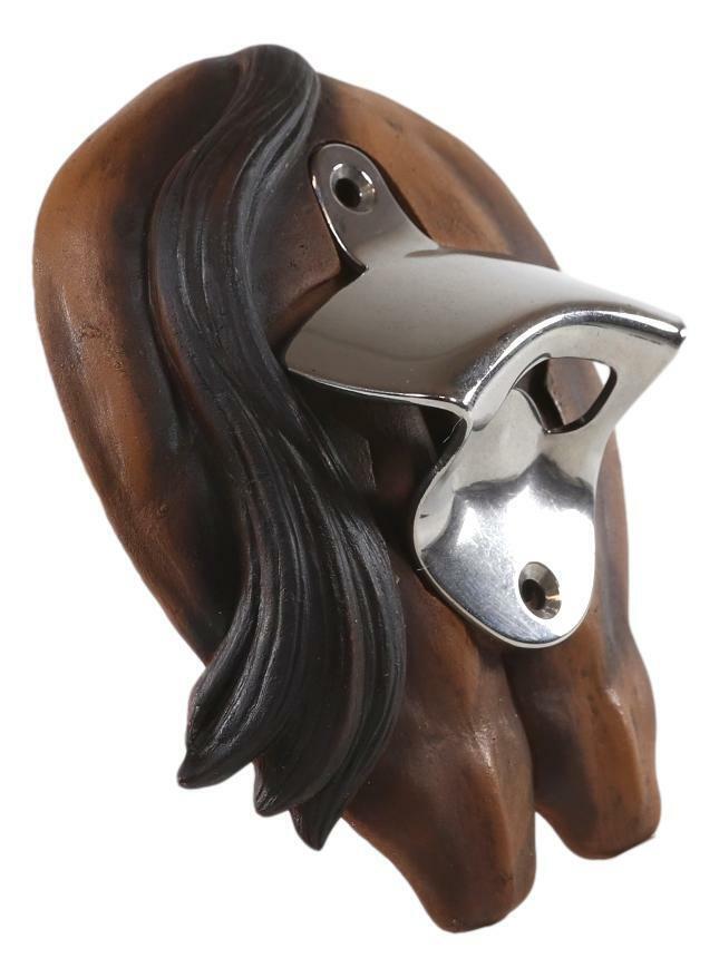 ? This Brown Horse Wall Mounted Bottle Opener is made of polyresin and stainless steel, hand painted and polished individually. Color Tone may vary from pictures.