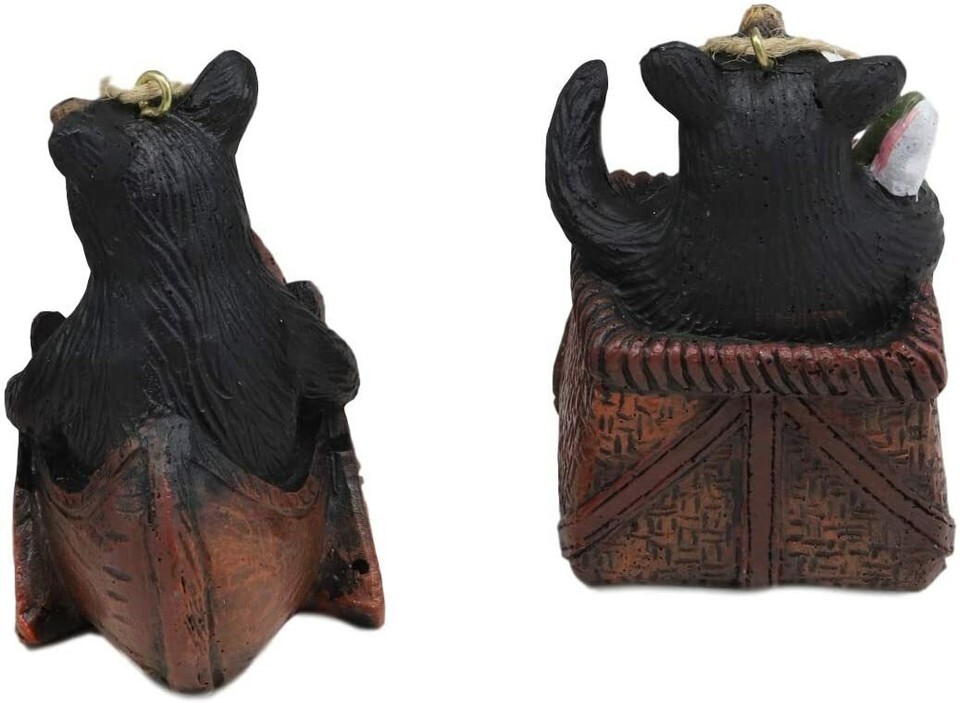 Ebros Western Set of 2 Black Bears In Canoe & Basket Christmas Ornament