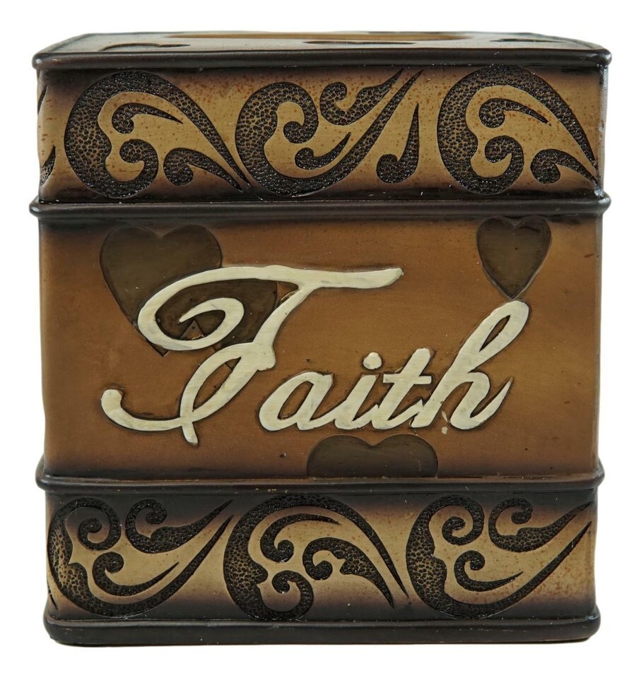 Western Rustic Tuscany Scroll Art Inspirational Faith Tissue Box Cover Figurine