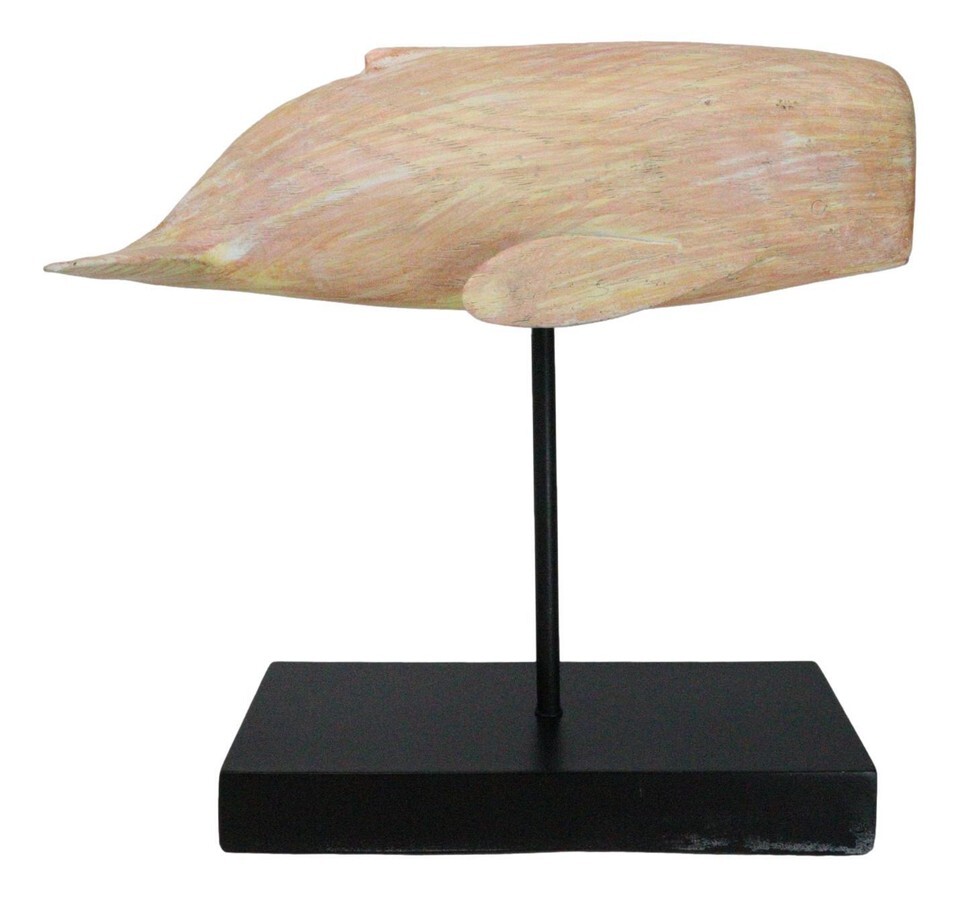 Nautical Marine Contemporary Sperm Whale Fish Faux Wood Sculpture On Pole Stand
