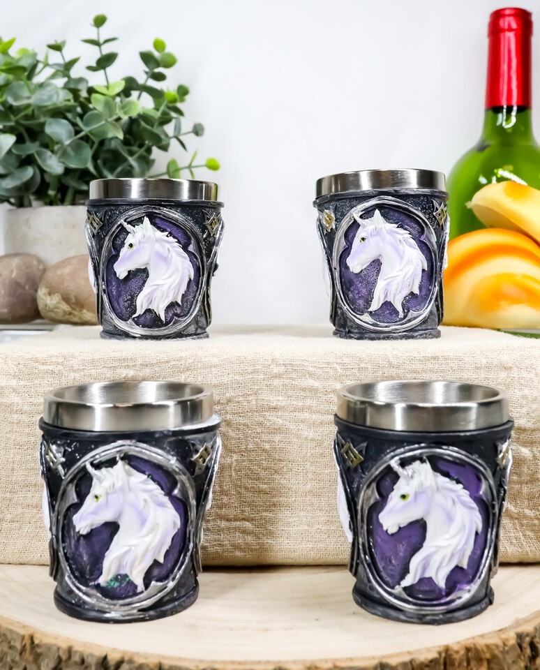 Ebros Mythical Fantasy Celtic Sacred Unicorn Shot Glasses 2-Ounce Set Of 4 Novelties