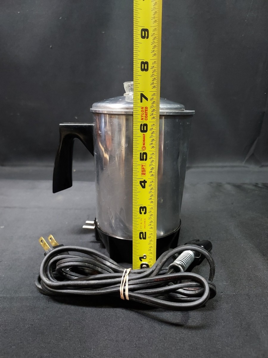 Cornwall Electric 4 Cup Coffee Percolator Model 225, SMALL, CAMPING, WORKS . Condition is Used. Shipped with USPS Ground Advantage.