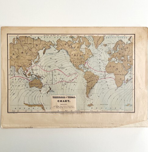 Map Of The World 1884 Thermal Tidal Chart Victorian Lithograph Antique DWP3D