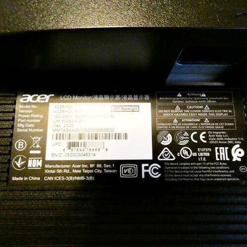 Acer V226HQL 21.5" 1920x1080 FHD 100Hz VA LED Monitor PATS ONLY